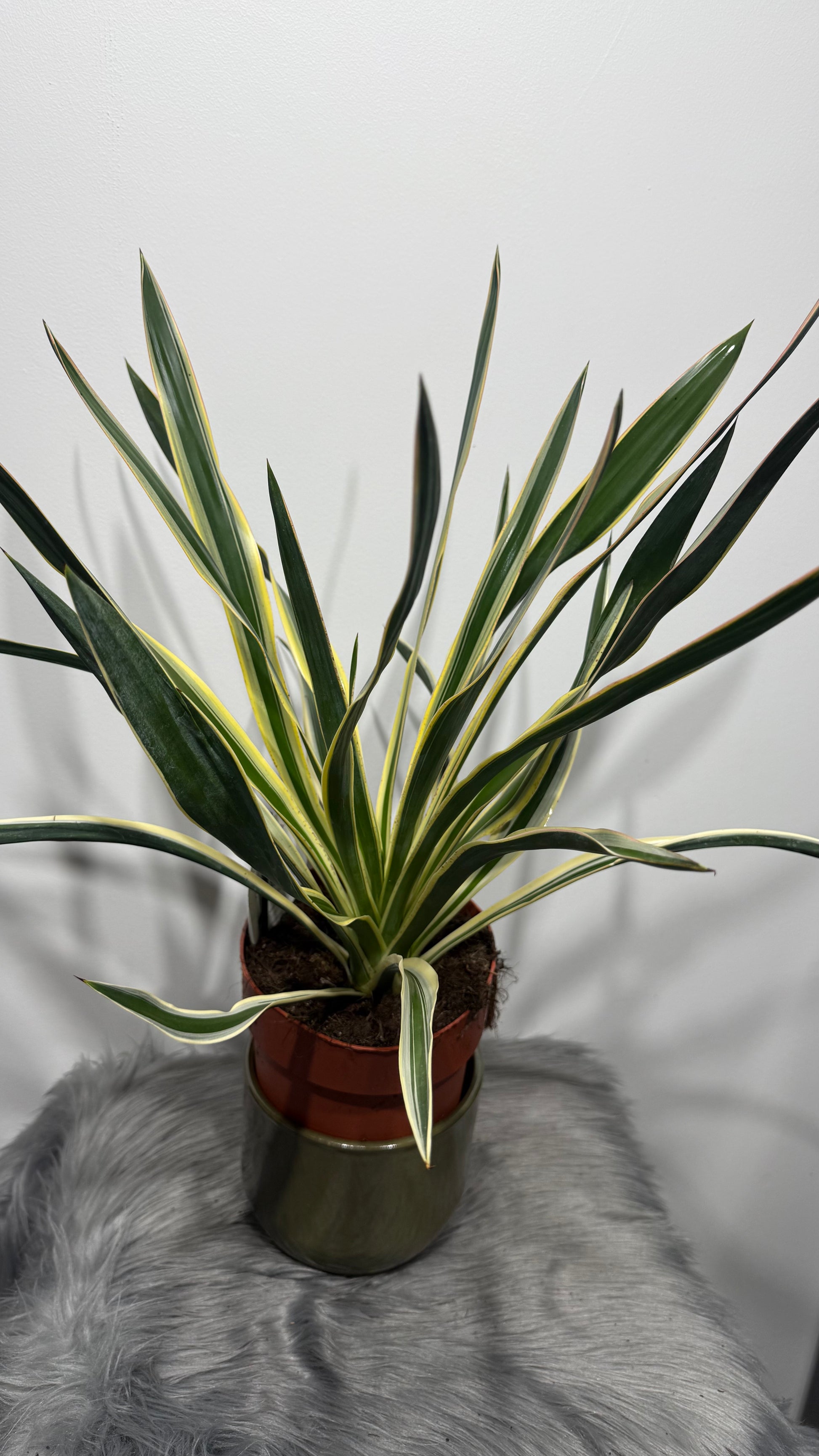 Tämä arkkitehtoninen ja äärimmäisen kestävä kirjokuusi on todellinen aavikon henkiolento kotonasi. Toisin kuin perinteinen täysin vihreä kuusi, tämä erityinen ('Variegata') lajike erottuu upeilla, jäykillä miekankaltaisilla lehdillä, joita koristavat kontrastiset kermanvalkoiset tai kellertävät reunat. Se muodostaa massiivisen, puumaisen varren ja kasvaa ajan myötä todella vaikuttavaksi, kookkaaksi huonekasviksi. Se on ilmeikäs, miehekäs ja täysin vaatimaton huonekasvi, joka antaa modernin, geometrisen ja eksoottisen vivahteen mihin tahansa sisustukseen. Erinomainen ja pitkäikäinen lahja sekä kiireisille ihmisille että kasvien aloittelijoille, sillä tämän aavikon kuningattaren tappaminen on todella vaikeaa!